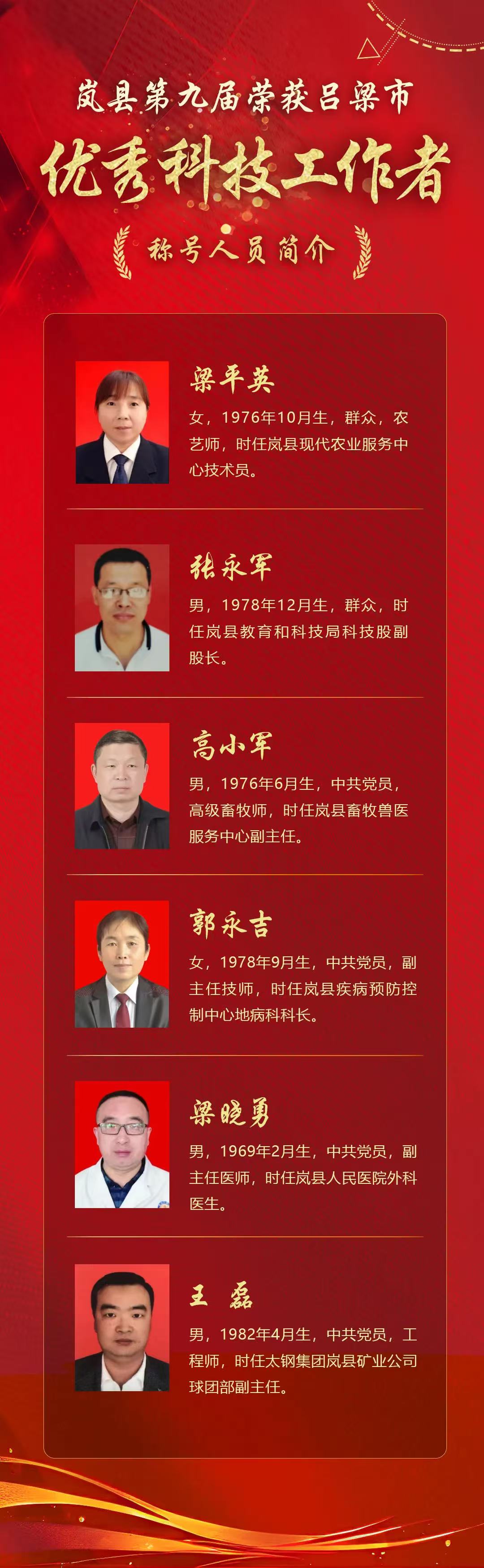 历届岚县荣获“吕梁市优秀科技工作者”称号人员