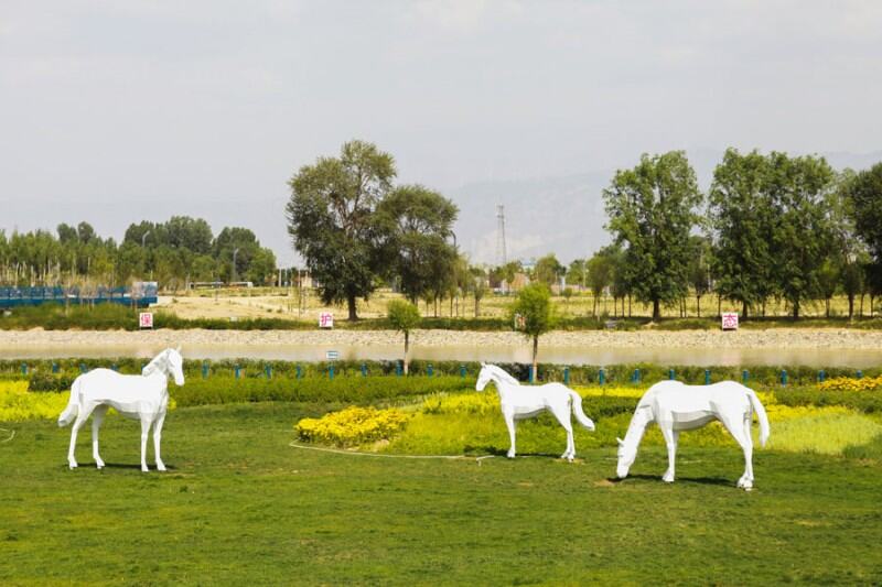 公园入口不远处矗立着一棵国槐树。据工作人员介绍,这棵国槐的“出生地”就在白马山。千百年来,牧马河正是从它的故土出发,一路奔流而下,流经忻州市忻府区、定襄县后,最终注入滹沱河,忻定平原大部分就是由牧马河冲积而成。因此,这棵象征牧马河源头的国槐,被工人小心翼翼地移栽到了这里,成了公园的“图腾”。