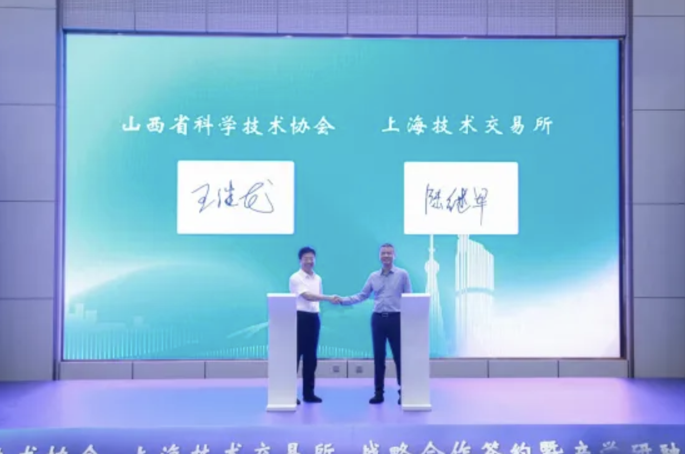 家有梧桐树,招得凤凰来。7月11日,以“赋能成果转化 助推高质量发展”为主题的山西省科学技术协会和上海技术交易所战略合作签约暨产学研融通创新报告会在太原举行。山西省人大常委会原副主任、山西省科协主席周然出席大会。山西省科协党组书记李贵增,上海技术交易所副书记、副总裁陆继军出席大会并致辞。国家发改委原气候司巡视员谢极,上海市高校科技发展中心主任、长三角高校技术转移联盟副主席兼秘书长陆震,山西省市场监督管理局(知识产权局)党组成员、副局长武小勤,山西省科协党组成员、副主席王继龙,山西省发改委二级巡视员张绪郡,山西省国资委二级巡视员王小涛,山西省总工会二级巡视员吴海亮,山西省工商联二级巡视员李树成,山西医科大学副校长张岩波,山西杏花村汾酒集团有限责任公司党委委员、副总经理刘卫华,山西云时代技术有限公司党委委员、副总经理王文逾,华舰体育控股集团有限公司副总经理王宏元,山西省教育厅科技与信息化处处长王晓伶,山西省科技厅成果评价与监督处处长杨先锋,山西省人社厅专技处一级调研员崔坚等出席大会。