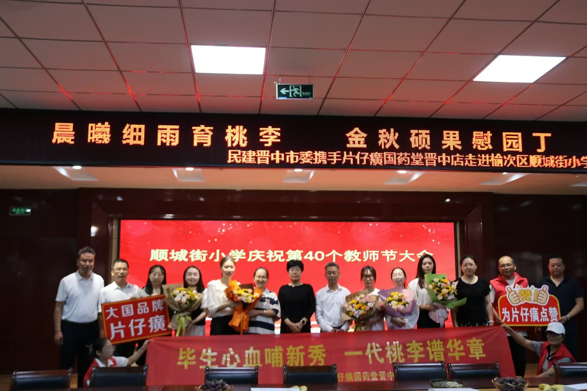 9月9日,在第四个教师节来临之际,片仔癀国药堂晋中店携手民建晋中市委会走进顺城街小学,与全体师生共同庆祝教师节。为各位优秀教师送上最诚挚的节日祝福。片仔癀国药堂负责人梁俊刚,民建晋中市委副主任刘建刚,张丽平,秘书长王仲豪参加。