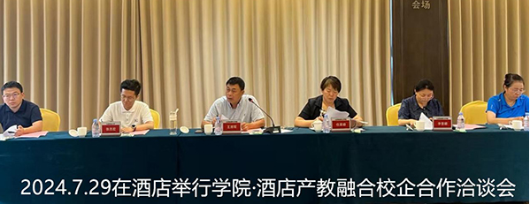 此次洽谈会聚焦产教融合、实习就业、成果转化等领域的合作展开深入讨论。会上,首先由酒店经理阎晓鹏向各位与会人员介绍了集团与酒店的基本情况,重点阐述了未来的合作模式及意向。院方领导对此合作意向表示认可,并表示愿与酒店进行深入沟通,下步将细化合作内容达成合作协议。
