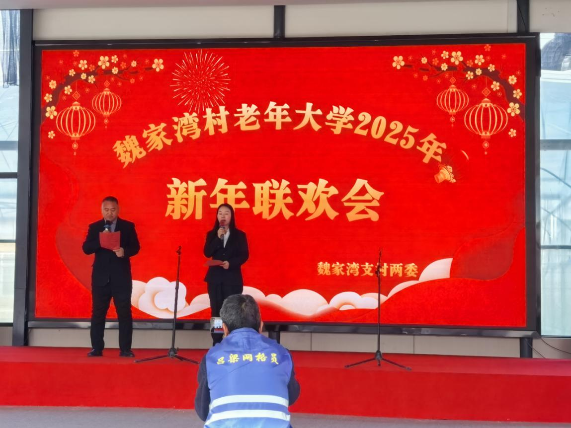 2025年新年的钟声敲响之际,魏家湾村委联合魏家湾村老年大学成功举办了一场热闹的新年联欢会,本次活动通过文化汇演的形式,向所有在村人员献上新年祝福。活动紧紧围绕 “文化点亮乡村”这一核心主题,以党建引领为重要抓手,所演出的节目在魏家湾村支村两委、驻村第一书记李昭、驻村工作队以及魏家湾老年大学全体学员共同努力下编排完成,力求为村民们呈现一场精彩纷呈的视听盛宴,用文化的力量为乡村注入活力,开启新一年乡村发展的美好篇章。