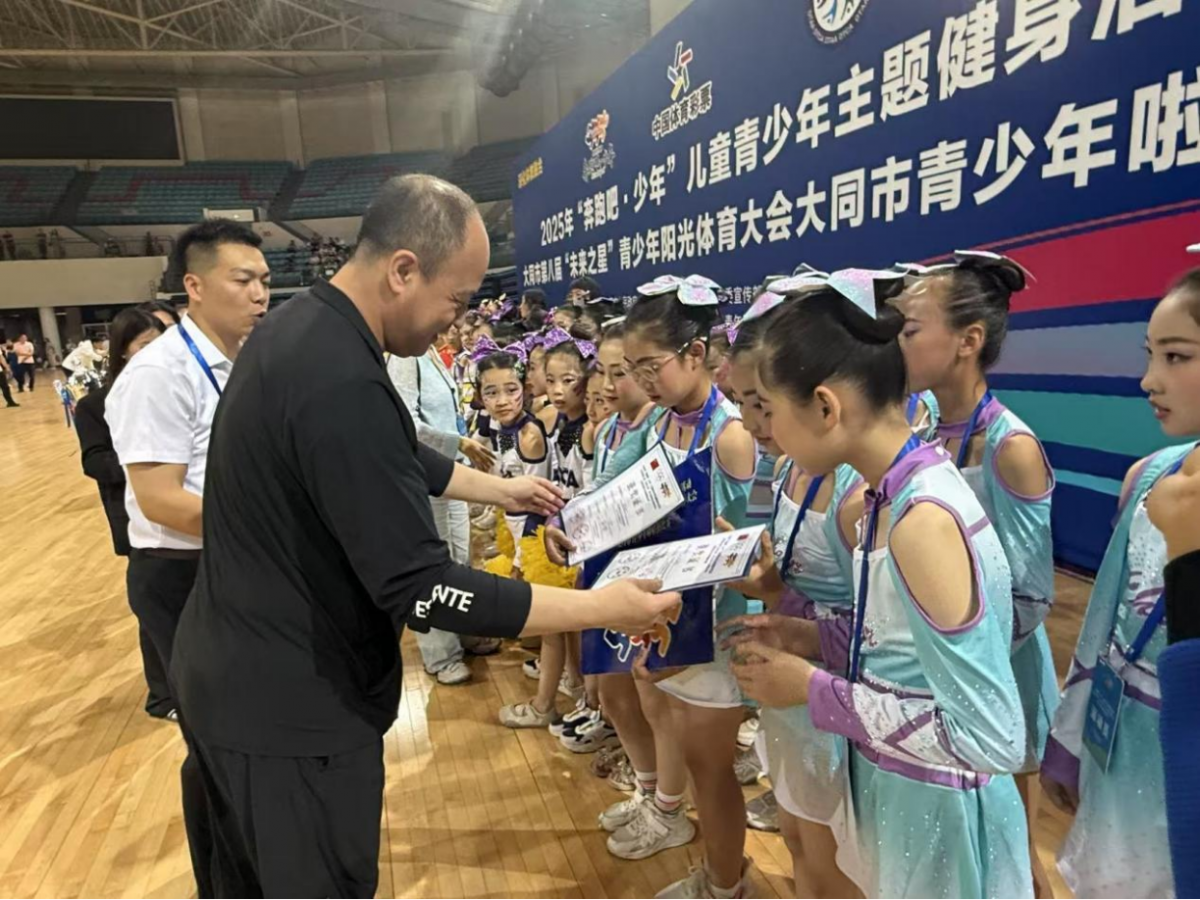6月15日,由大同市政府主办,市体育局、市教育局、团市委承办的 2025 年 "奔跑吧・少年" 儿童青少年主题健身活动暨大同市第一届青少年啦啦操比赛在市体育中心圆满落幕。作为大同市第八届 "未来之星" 青少年阳光体育大会核心赛事,吸引全市80支代表队、近千名青少年选手报名参与,创下全市青少年单项体育赛事参赛规模新纪录。