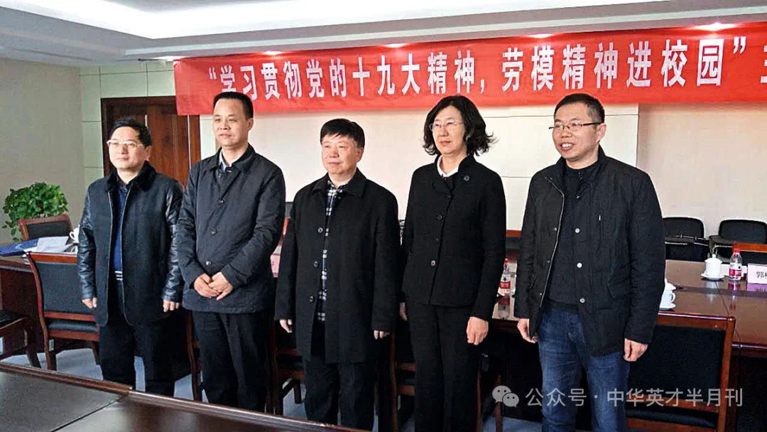 在“劳模精神进校园”活动中,寇子明与劳模代表一起给师生们宣讲劳模精神