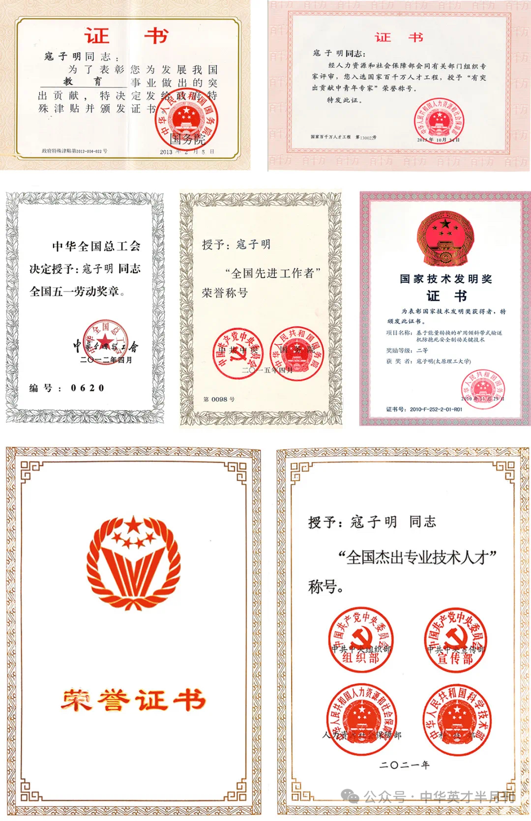 寇子明的部分荣誉证书