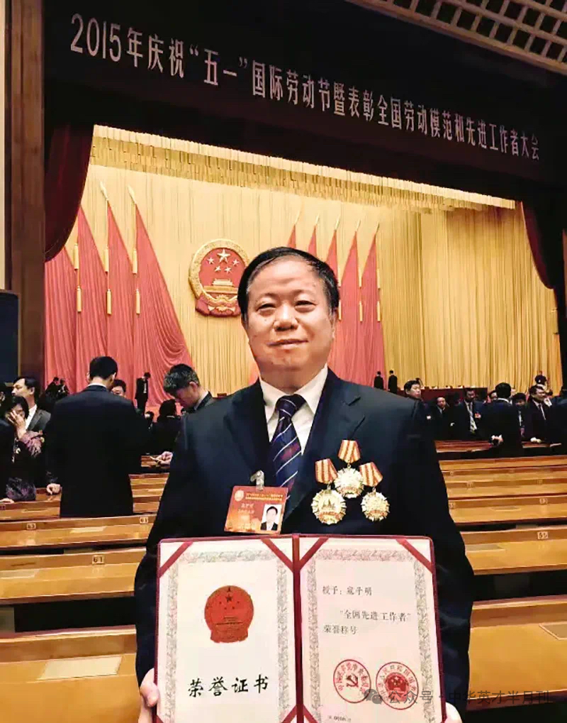 寇子明荣获“全国先进工作者”称号,并在人民大会堂颁奖现场留影