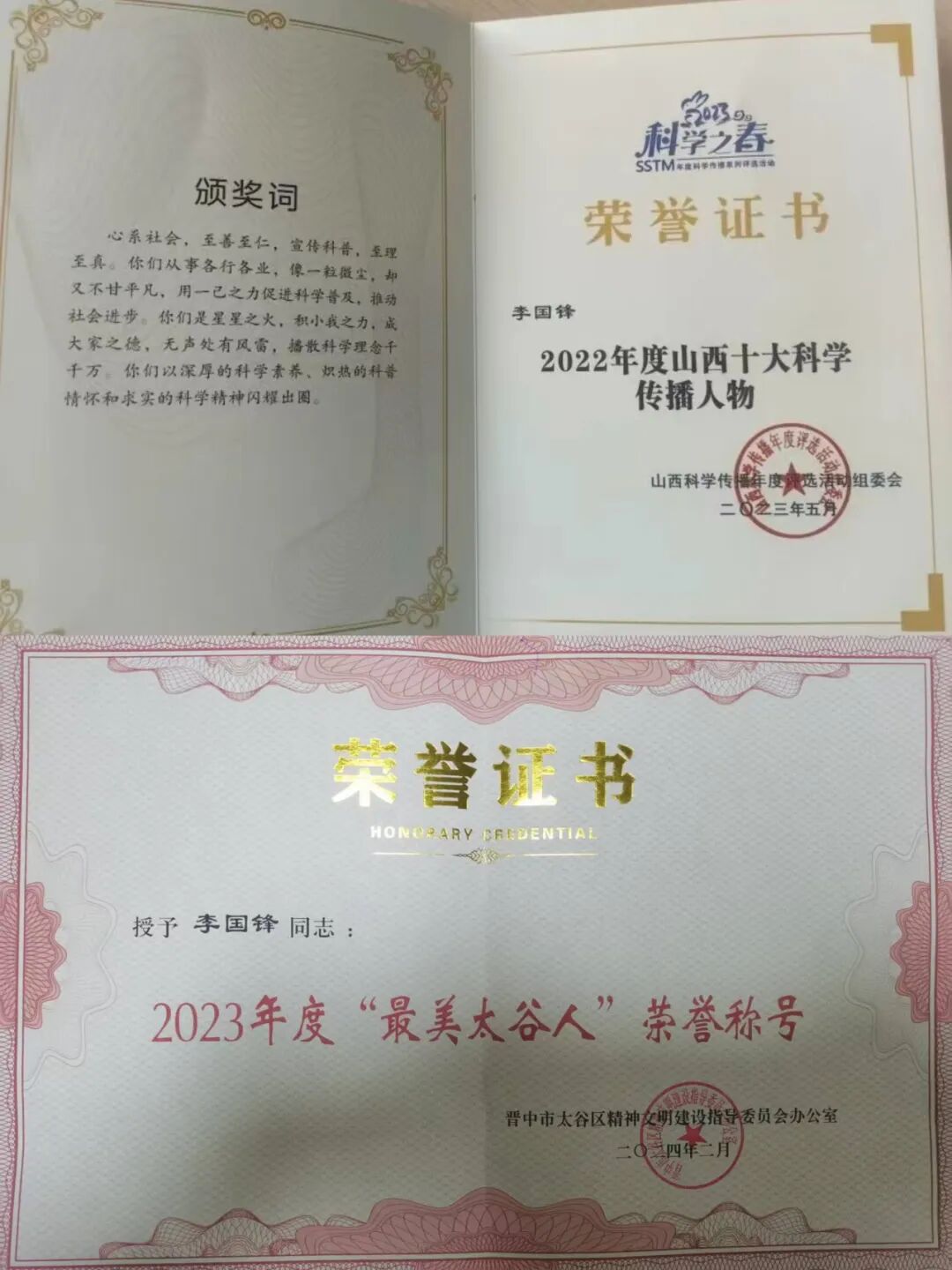 这些亮眼数字的背后,是一亩亩土地的深耕、一块块钱的增收——每一组数据都印着他的脚印,每一分增收都浸着他的汗水。从青春弱冠到华发丛生,李国锋的足迹遍布太谷150多个行政村。他先后获评 “全国科技助力精准扶贫先进个人”“山西省十大科学传播人物” 等十多项荣誉,更助力区科协连续三次荣获中国科协 “全国科普日优秀奖”。可在他心里,再多荣誉也比不上丰收时农民递来的甜桃与道谢 —— 那才是他最珍视的 “勋章”。