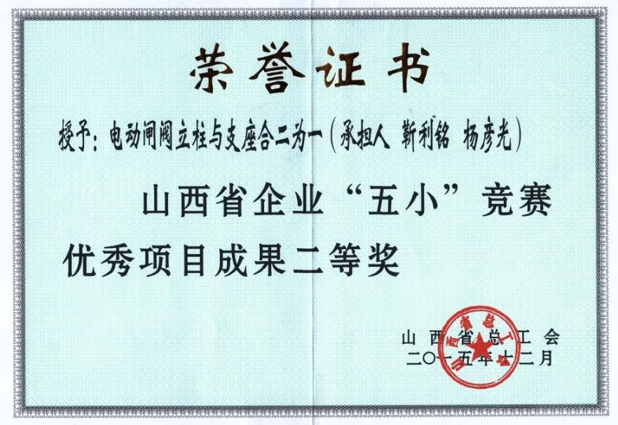 工作单位:阳泉阀门股份有限公司