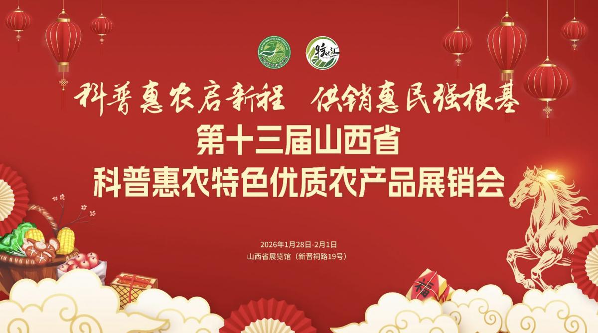 灵蛇辞旧岁,瑞马迎新春。2026年新春消费旺季临近,为助力山西特色优质农产品拓销路、提品牌,搭建高效产销对接平台,第十三届山西省科普惠农特色优质农产品展销会,将于1月28日至2月1日在山西省展览馆举办。本届活动以“科普惠农强根基 供销惠民启新程”为主题,延续往届品牌积淀与资源优势,聚焦参展单位核心需求,通过精准流量导入、多元展示场景、专业对接服务,打造集品牌推广、产品销售、资源对接于一体的精品展会。