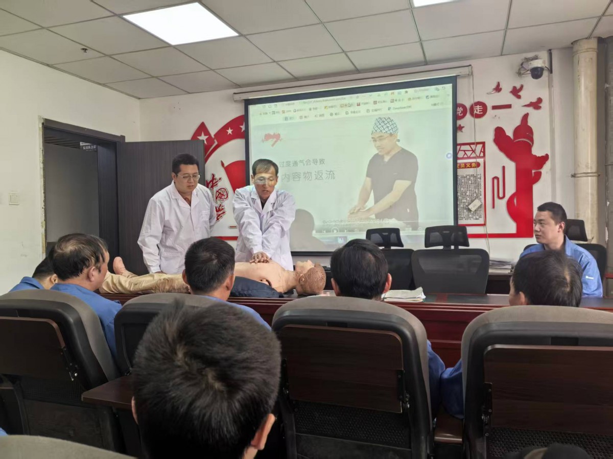各队组利用班前会常态化开展安全教育,组织职工集中观看急救常识、应急处置规范等教学视频,做到“每日一课”,持续巩固应急处置要点。邀请专业医护人员深入班组,结合煤矿井下作业特点,重点讲解心肺复苏、人工呼吸、创伤包扎等实用技能,通过现场示范、手把手指导、模拟实操演练等方式,纠正常见操作误区,让职工真正做到听得懂、学得会、用得上。同时,严格落实每班配备2名兼职急救员制度,确保突发情况能够第一时间响应施救。