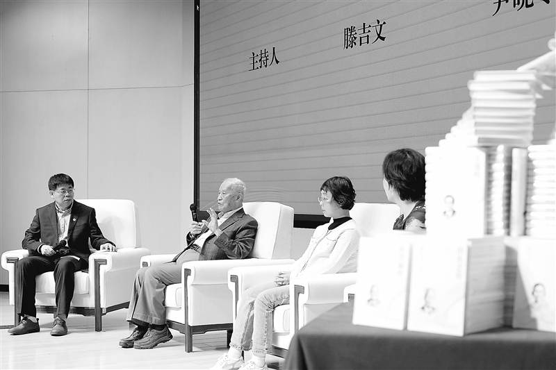 图为在“全民阅读活动周·科学家精神故事会”暨科学家精神主题丛书发布活动上,中国科学院院士、地球物理学家滕吉文(左二)向年轻人讲述他用阅读点亮科研之路的科研故事。