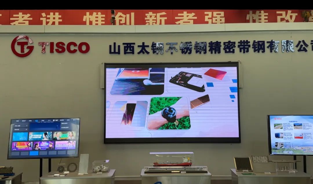 从8号厂区大门进入,沿着同工艺路线精密吻合的展览路线参观。从主展台、轧机、清洗、光亮线到手撕钢卷展台、拉矫、纵切,参观者可以看到2台四立柱20辊可逆冷轧机、2台全氢光亮退火线、1台二十三辊拉矫机组、4台精密纵切机组等国际先进装备。这些立足公司配备的全流程高等级精密带钢产品生产线,充分展示了基地在科技创新和生产能力上的实力。