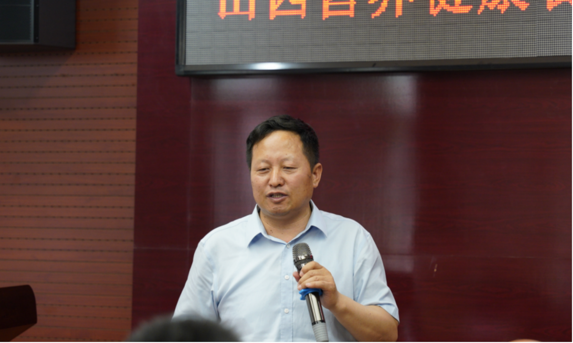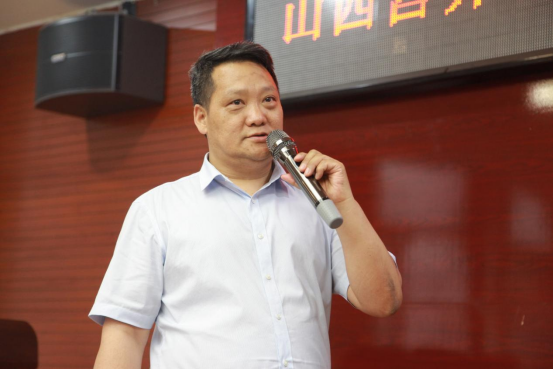▲胡金辉宣读第三届山西省全民营养健康科普知识大赛方案